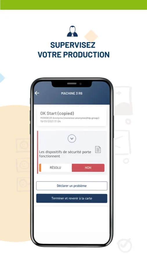 - Déclaration d’alertes (avec visualisation de l’alerte / andon sur écran)