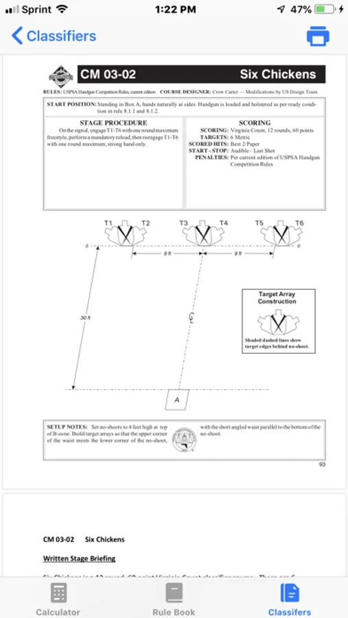 Range Tuul is the app that all competitive shooters need. You can check classifier scores, read the rulebook, view classifier diagrams, and even print stage diagrams directly from your device! Absolutely no internet connection is needed. Just download the app and forget about it until you shoot that next classifier.