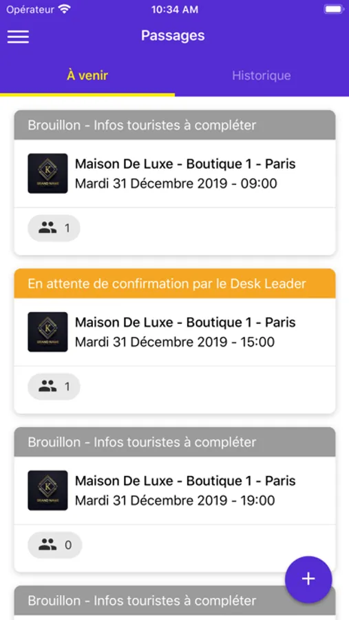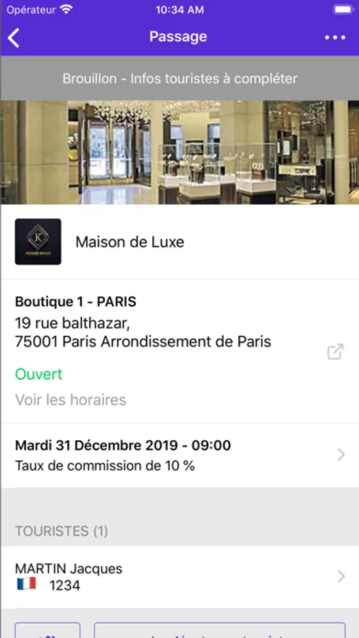 - Les Guides de Touriste peuvent planifier à travers l'application leurs passages avec leurs groupes dans les Grands Magasins, les Maisons de Luxe, et les Boutiques : planning et rooming list
