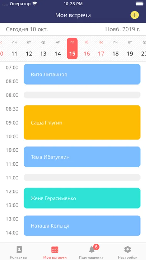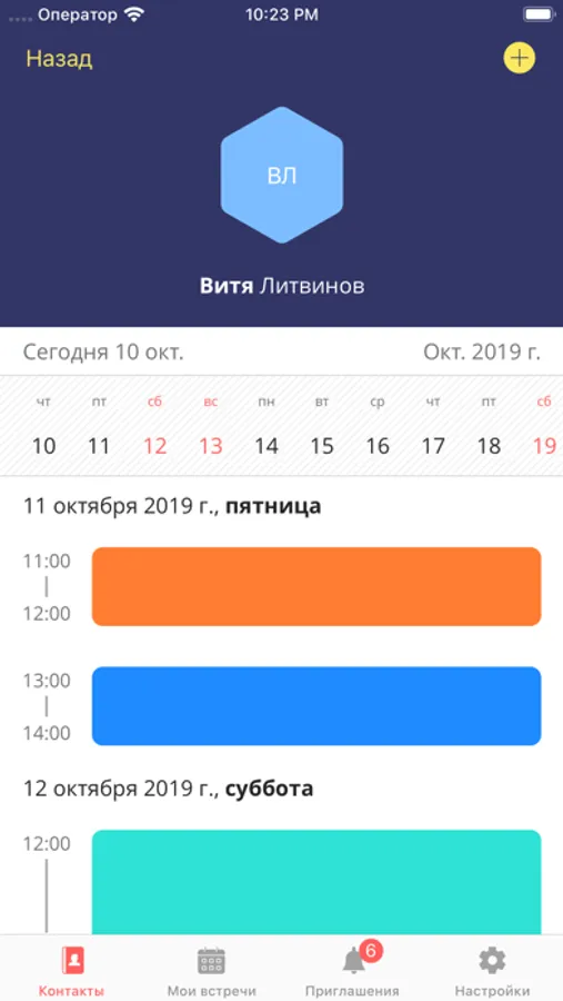 Делитесь расписанием и планируйте встречи с другим пользователем, если он есть в контактах вашего телефона.
