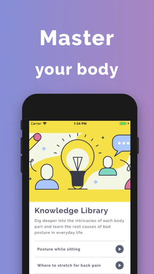 - A knowledge library for you to learn about the intricacies of your own body and how it relates to posture
