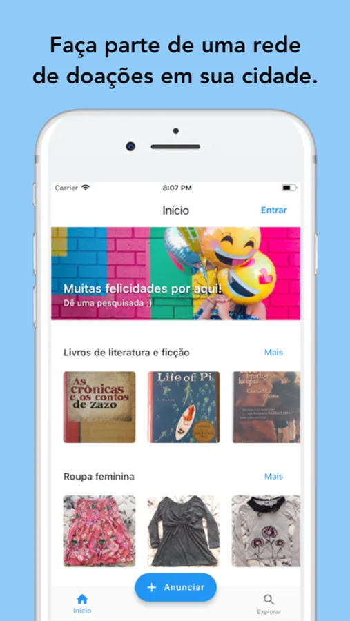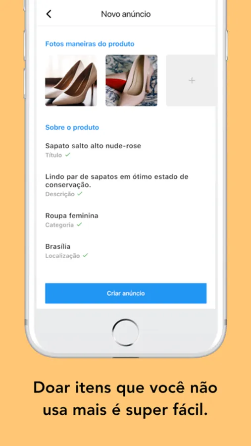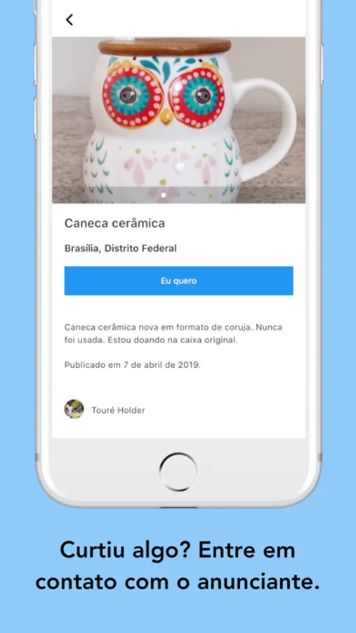 Que tal dar uma renovada no guarda roupa sem gastar nada? Baixe o app e descubra o que está sendo doado na sua cidade. Se você se interessar por alguma doação, é só tocar no botão "Eu quero".