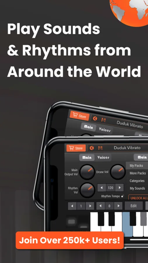 Introducing our revolutionary World Piano app that lets you explore the rich and diverse musical traditions from around the world. With our app, you can play a variety of sounds, rhythms, world music scales, and drones that are authentic to different cultures and regions, right on your iOS device.
