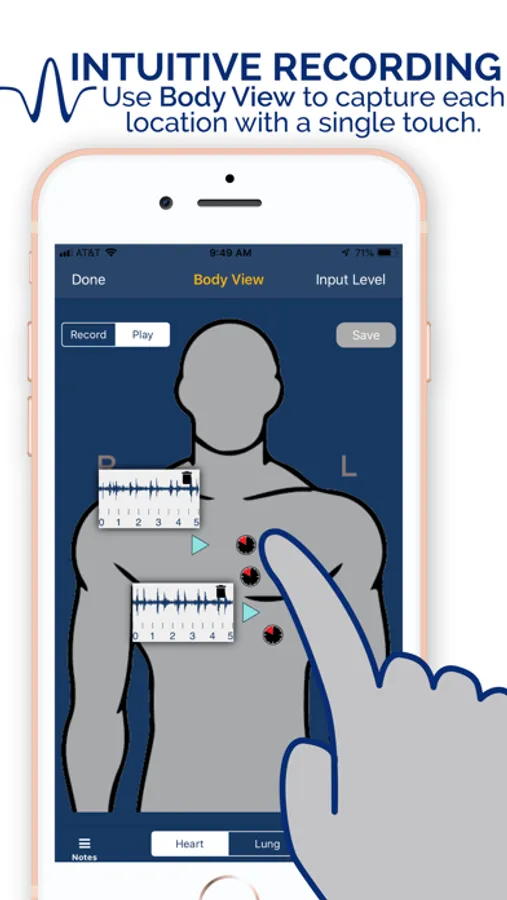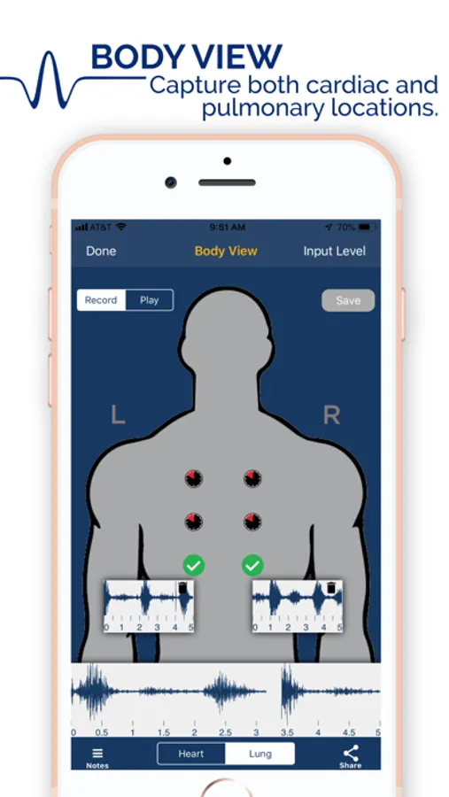 * Three different views for capturing sounds, including Body View, Thinklabs Wave lets you label and save sounds in the location where you captured your recording;