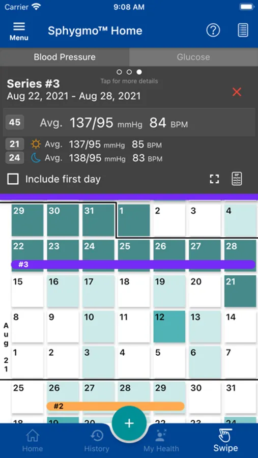 • Rapidly and efficiently calculate blood pressure and blood glucose averages with our patent-pending Swipe Averaging™ feature. Bring your phone to your next appointment with your physician or pharmacist, and they can use Swipe Averaging™ to quickly and easily assess your readings for clinical decision making.