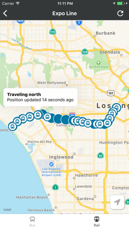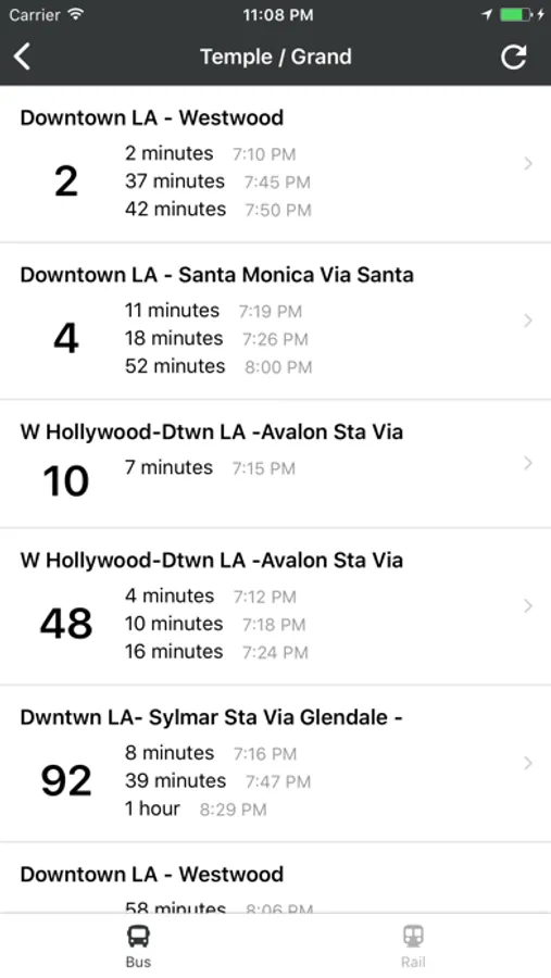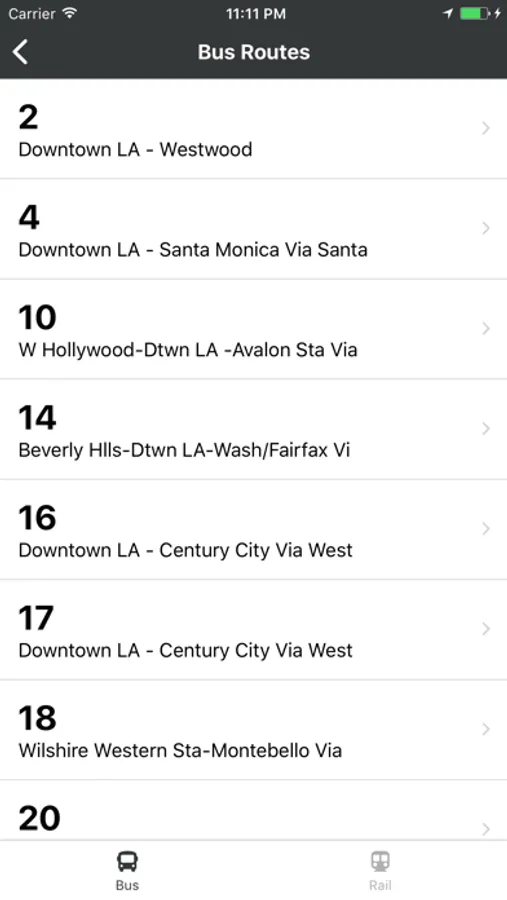 Live bus times, rail (Metro) times, and route information for Los Angeles transit.