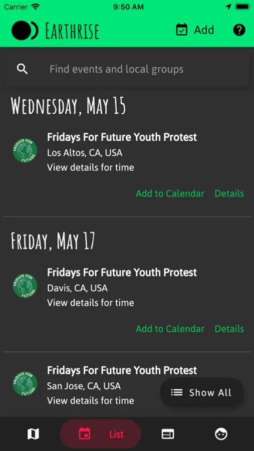 The mission of Earthrise is to make environmental activism easy. Take action on climate change, mass extinction and other environmental issues through organizations near you, make lifelong friends and fight for a better tomorrow.