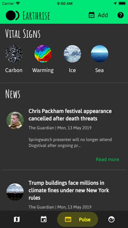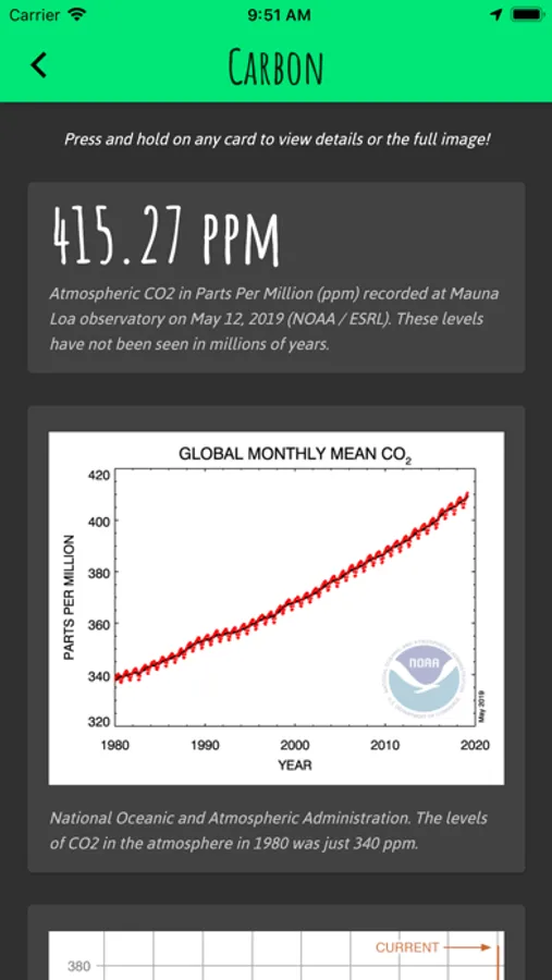 * Check out the Earth's Vital Signs through daily scientific measurements of carbon dioxide, temperature anomaly and sea ice extent.