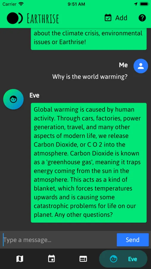 * If you ever have any questions, talk to Eve, our very own climate change chatbot!