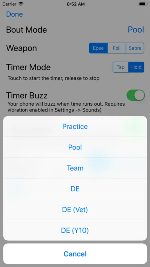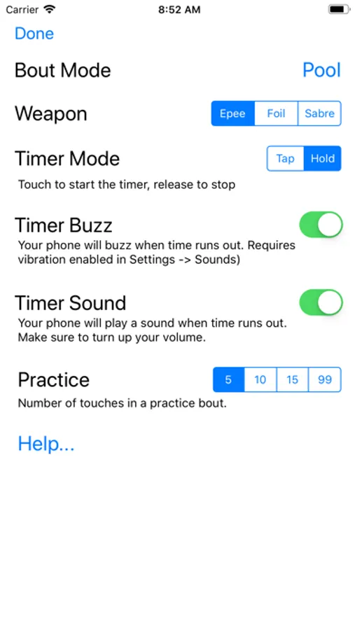 Fence! (Pro) has been designed from the ground up for fencing referees. The app features easy to user timers, large button targets, and an uncluttered display.