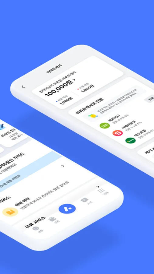 관리비와 월세 자동이체 신청과 택배 예약, 아파트아이 회원만 가능한 금융상품 추천과 할인 이벤트까지 다양한 생활/금융 서비스를 만나볼 수 있어요.