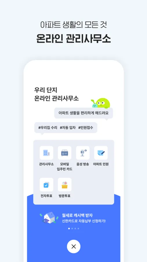 종이 고지서보다 빠르고 편리하게 관리비를 조회하고 납부할 수 있어요.