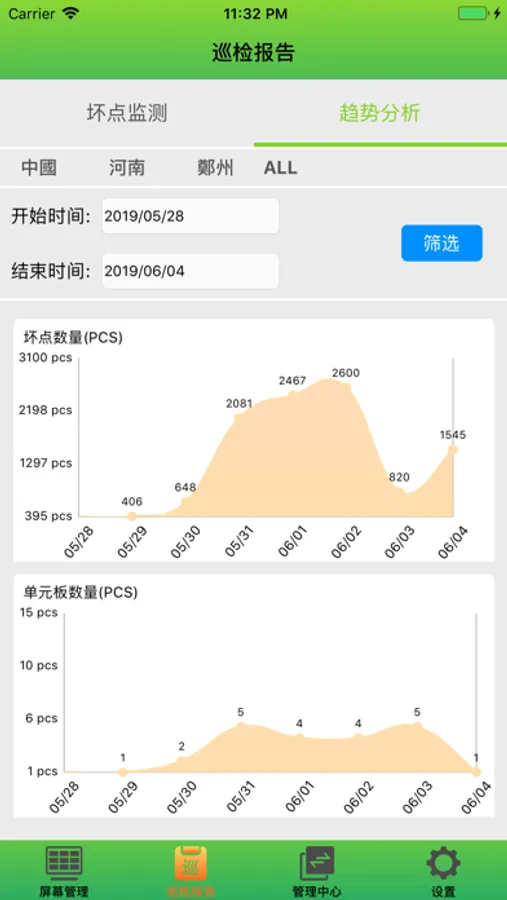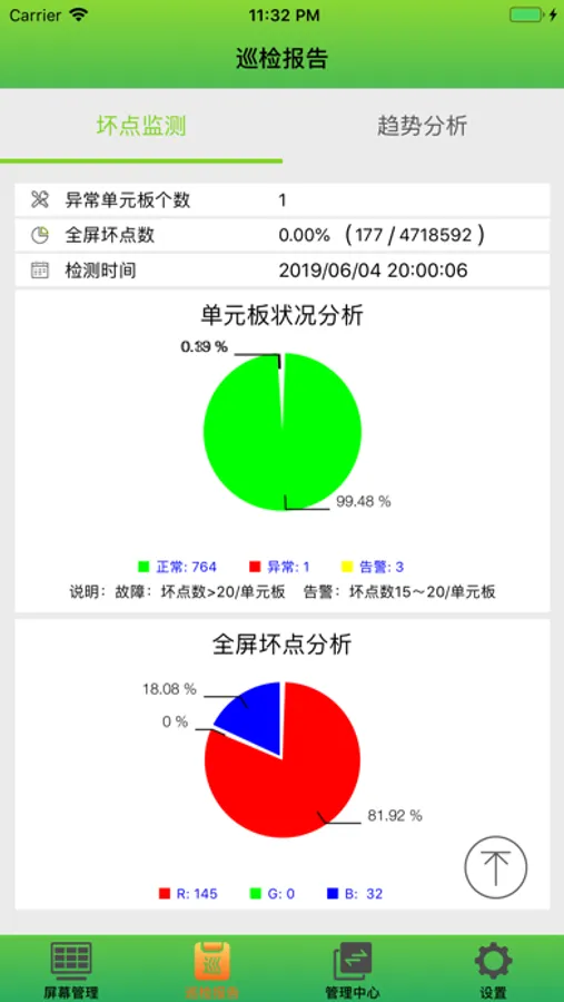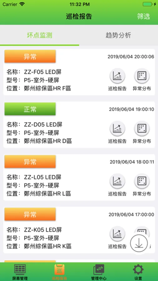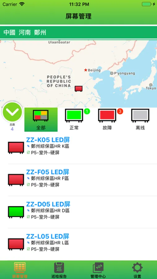 LED-Viewer 主要提供给购买本公司LED屏的全球的顾客管理和监控LED屏的状态。主要功能分为:屏幕管理、巡检报告等。帮助用户随时随地查看账户下的显示屏状况,定时巡检屏体,如有异常生成体检报告并及时发送消息通知用户,以及提供派工维修等功能服务。