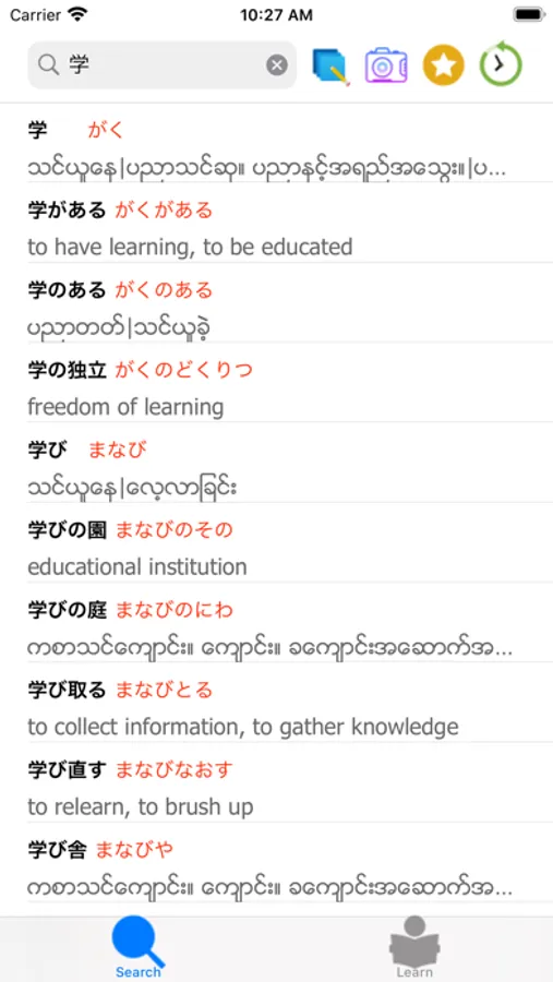 -日本語の漢字、ひらがな、カタカナ、ミャンマーごで検索可能です