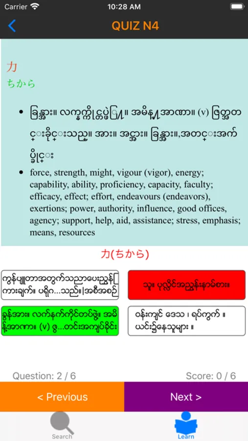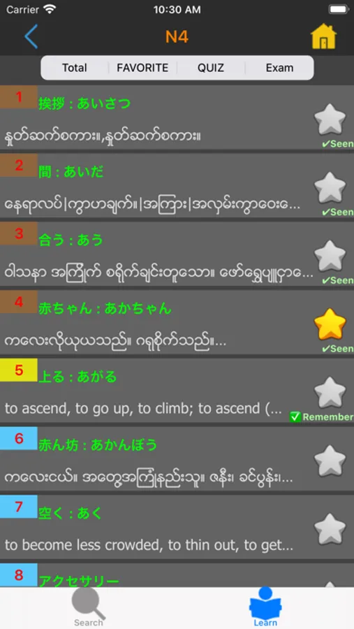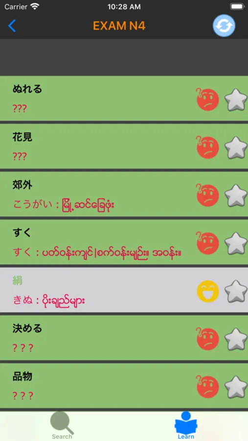 アプリはシンプルなデザインですが、ミャンマー語 - 日本語 の辞書が入っており、日本語学習中の皆に全ての能力レベルに対応する問題が無料で追加されています。
