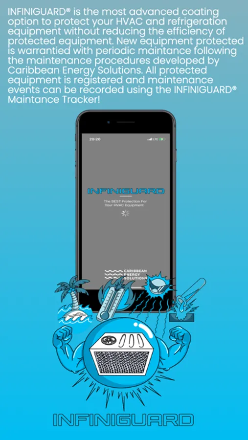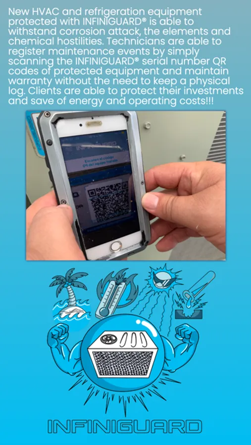 The INFINIGUARD® coating is the most advanced solution for HVAC equipment protection against corrosion and harsh environments. With the INFINIGUARD® Maintenance Tracker you will be able to easily and efficiently record all your inspection and maintenance activity without having to use any paper forms or type in information, all inspection information is recorded via the use of QR codes and pictures. Even better, the mobile application will allow users to contact Caribbean Energy Solutions with any questions or concerns.