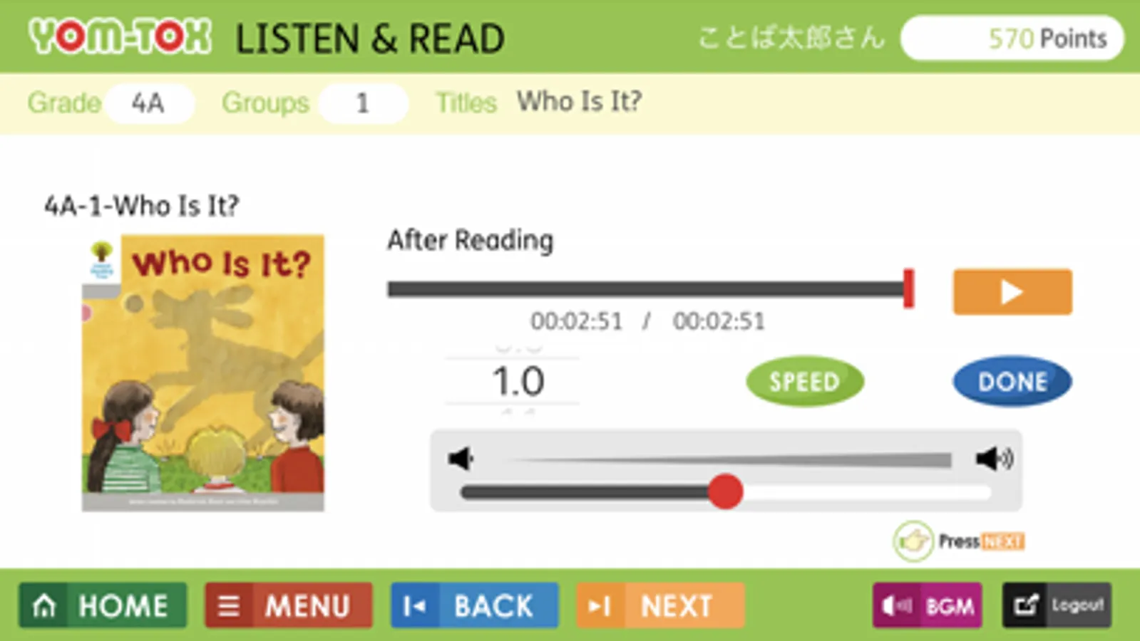 「英語学習専用アプリ。OXFORD READING TREE(ORT)216冊のリーディングが可能。倍速変換機能を搭載し、0.8倍から3.0倍速までそれぞれのリスニング力にあった倍速変換が可能です。対象年齢・学年は5~15歳(中学生)。リーディングのほかに、動画による解説や、単語学習機能、家庭学習機能、フォニックス学習機能を搭載。多読を通じて英語を英語のまま理解するリスニング・リーディング力向上に最適のアプリです。」