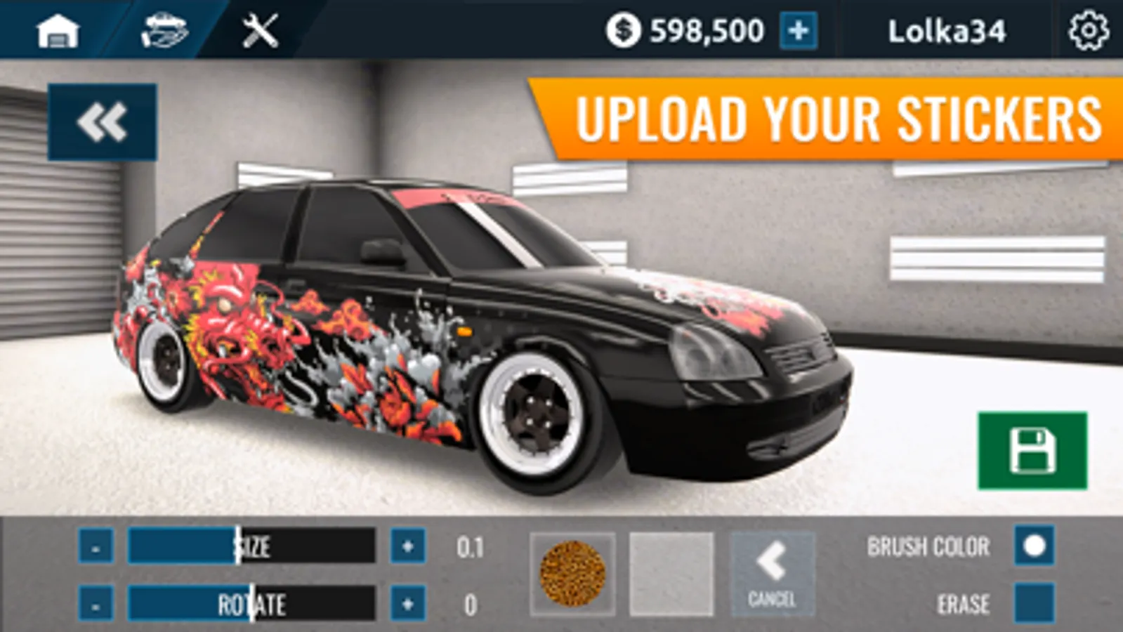 You can tune body parts, upgrades or paint jobs. Build a garage with your favorite customized Russian cars and create your own perfect racing deck to compete with your friends or other racers.