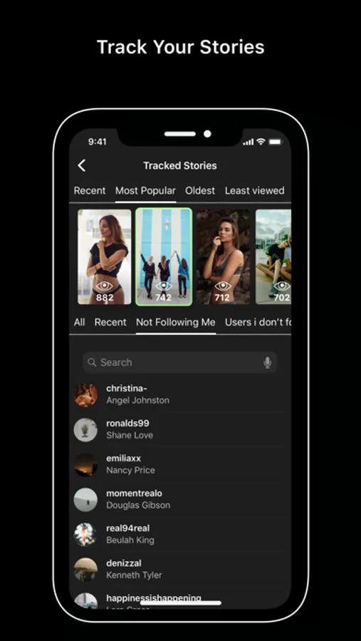 - Story search: Easily search for a specific following's story