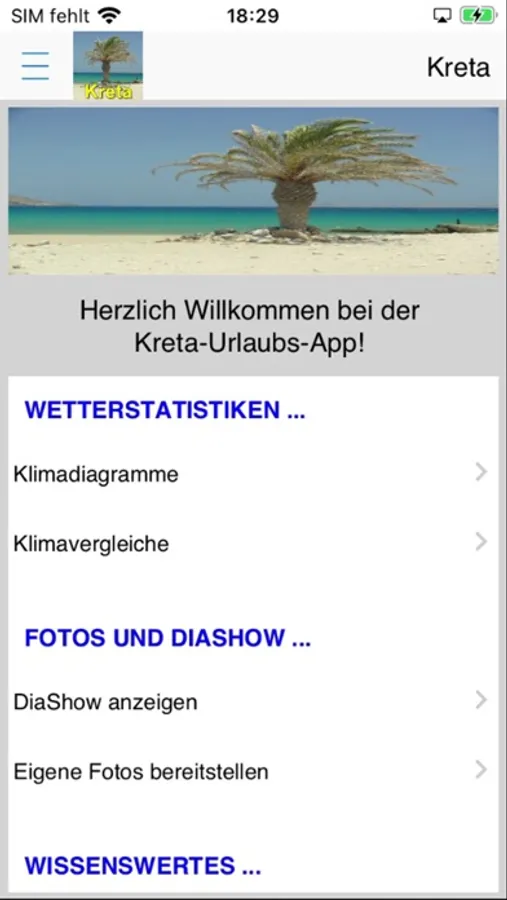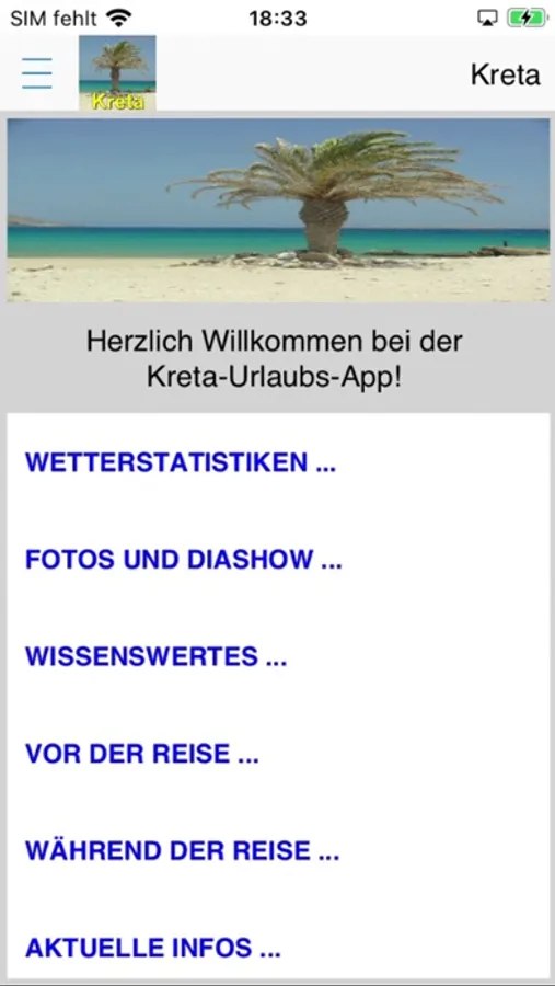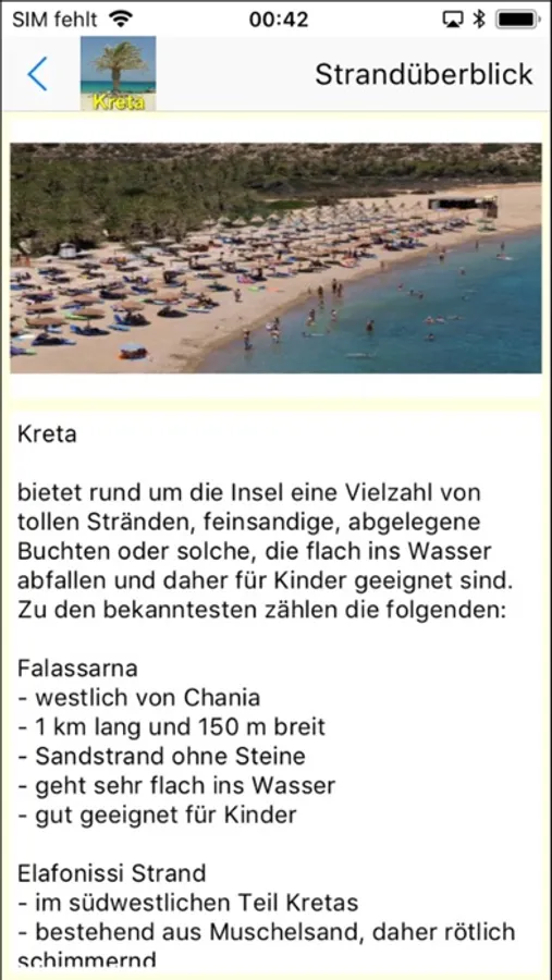Die App für die Insel Kreta ist besonders geeignet für alle Wassersportler (insbesondere Segler, Kiter, Wellen- und Windsurfer) aber auch sehr hilfreich für "Nicht-Wassersportler" unter den Urlaubern und Anwohnern und die "Sonnenanbeter". Sie bietet umfangreiche Infos zu Wetter, Wind, Klimadiagramme und Klimavergleiche, Checklisten für den Koffer und die Reiseapotheke, Urlaubstagebuch, DiaShow usw. Diese App wird noch weiter entwickelt und es werden noch weitere Punkte wie Windsurfen und Kiten, Verkehrslage, Fahrpläne, Campingplätze und Womostellplätze sowie Hotels und Ferienwohnungen, Veranstaltungen usw. hinzukommen und wir freuen uns über Anregungen dazu.
