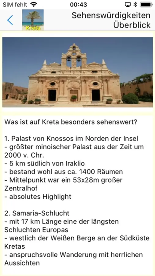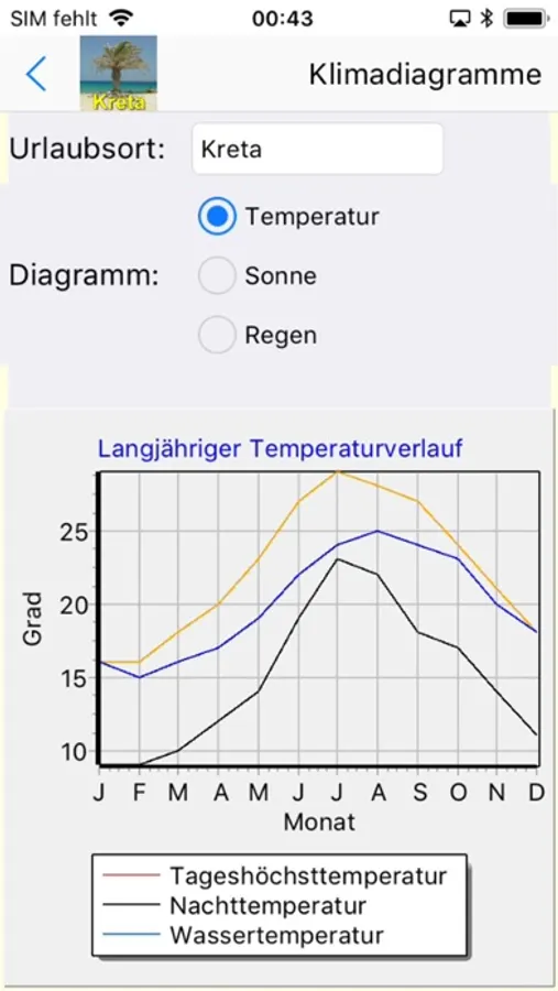Die Kreta App und enthält u.a. Wetterstatistiken mit schönen Diagrammen z.B. zum Klimavergleich zweier Urlaubsorte. Außerdem bietet sie eine Reistagebuch und Reise-Checklisten für Ihre Reiseapotheke und Ihr Urlaubsgepäck, welche Sie auch selber verfeinern und im nächsten Urlaub wieder benutzen können. Weiterhin ist eine kleine Diashow und eine Sammlung von relevanten Webseiten für die Region vorhanden und gibt Ihnen die Möglichkeit, alle Informationen, die für Ihren Aufenthalt auf Kreta oder für Sie als Fan von Kreta interessant sind, möglichst bequem im Internet abzurufen: