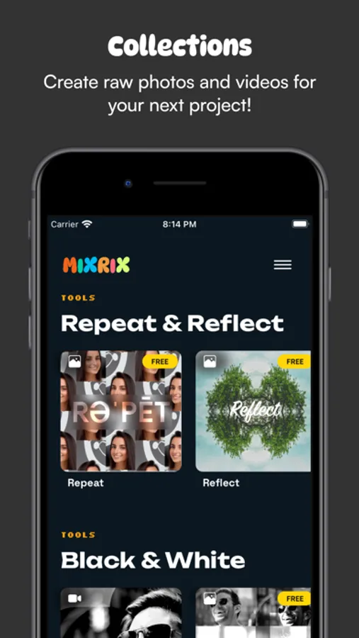 Are you ready to take your photos and videos to the next level? With Mixrix, you can create unique and raw content for your next project or use it as a secondary tool to enhance your own photos and footage.
