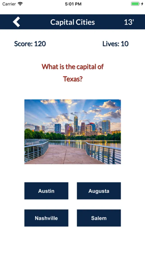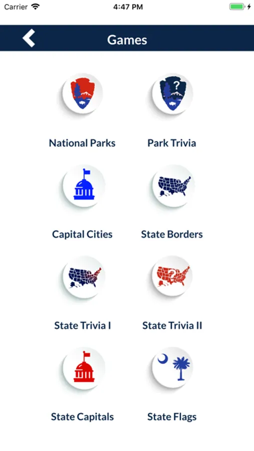 Each game includes 50 questions. 400 questions to test your knowledge in US state trivia. Stunning photography of capital cities and national parks as well as custom-made maps that provide great visual aides to supplement and reinforce learning.