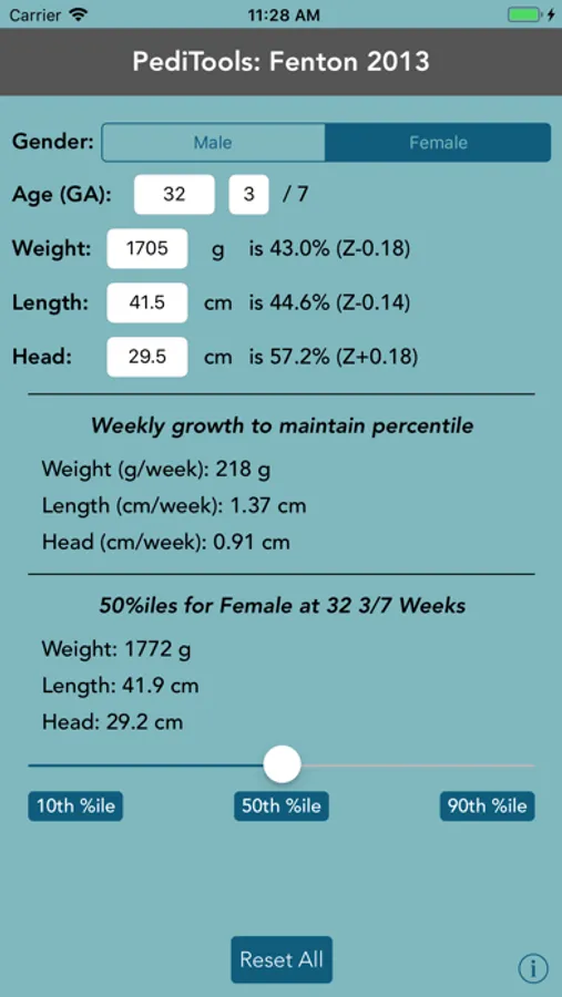 Developed for pediatric clinical providers, this app uses the 2013 Fenton growth charts for premature infants between 22 4/7 and 50 0/7 weeks gestation to report percentiles and Z-scores for weight, length, and head circumference.
