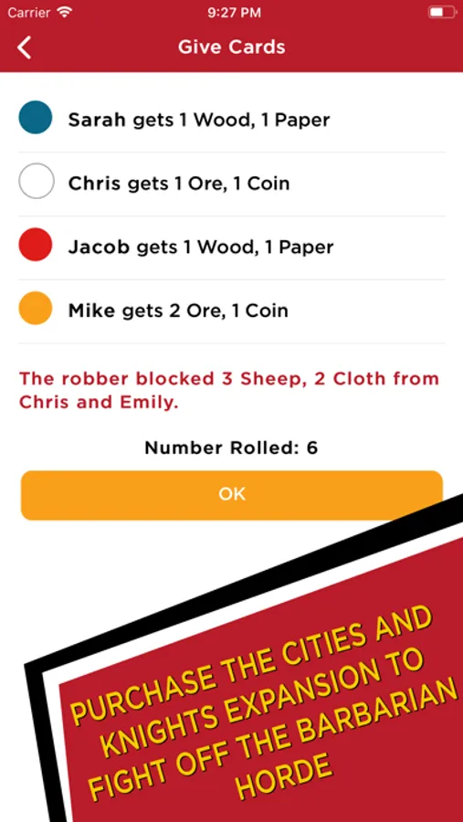With Settler's Log Pro, you no longer need to rely on the honor system to distribute resources. Stop spending valuable time scanning the board to make sure you haven’t forgotten someone’s sheep or wheat.
