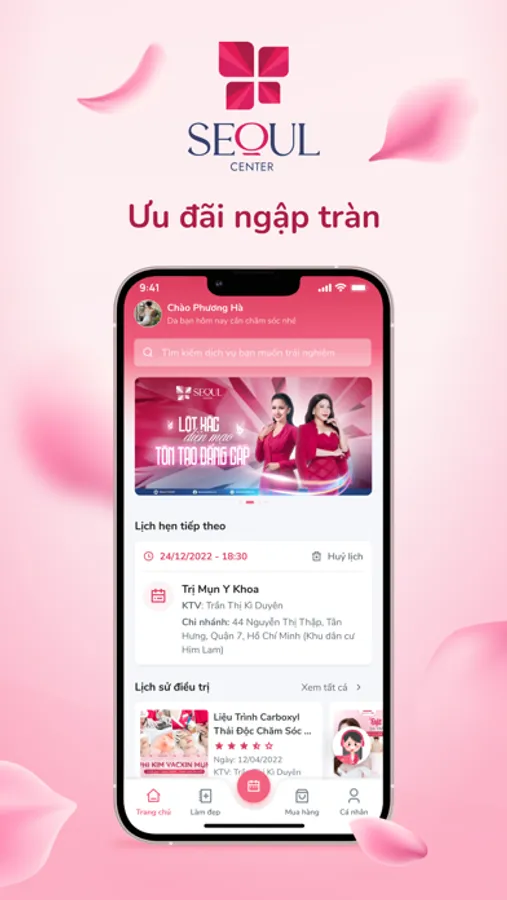 Seoulcenter.vn là app nhằm giúp khách hàng có thể theo dõi các thông tin khuyến mãi một cách nhanh chóng. App còn cung cấp các hướng dẫn làm đẹp đơn giản, nhanh chóng cho khách hàng.