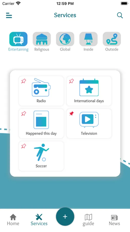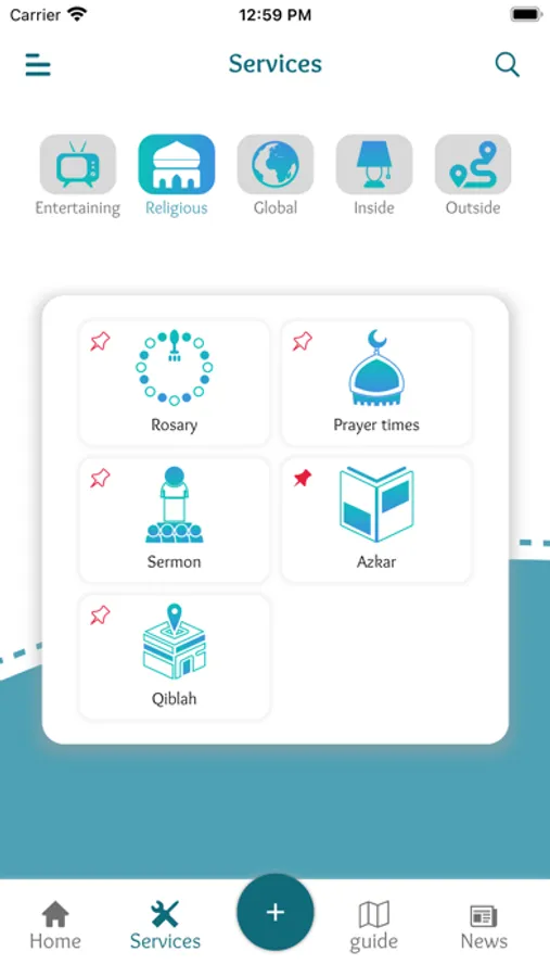 And public services which are (radio - international days - an event on this day - television - matches - electronic rosary - prayer times - sermons - remembrance - direction of the qiblah - currency rates - currency converter - gold prices - jobs - know your country - greeting cards - library Electronic - Home Pharmacy - Ideal Weight - Emergency - Weather).