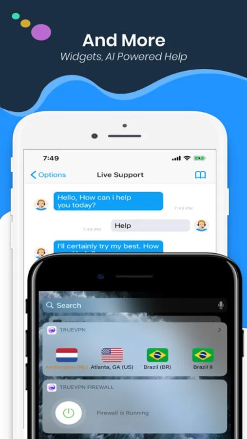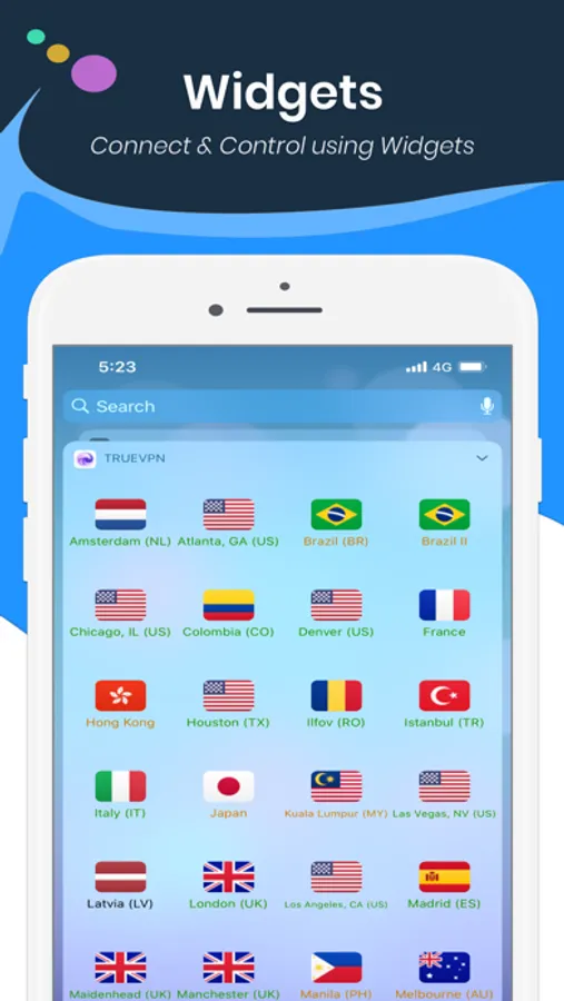• TrueVPN has a dynamic widgets to control blocking & connection