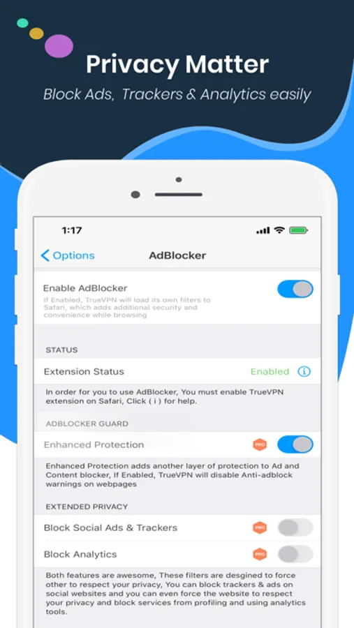 • TrueVPN has a content blocking extension which block ads and trackers
