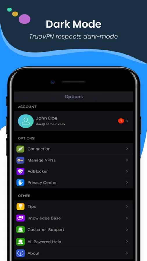• Dark-mode is supported on TrueVPN.