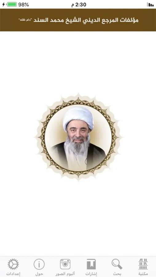 تطبيق يحتوي على السيرة الذاتية ومؤلفات المرجع الديني آية الله الشيخ محمد السند ـ دام ظله