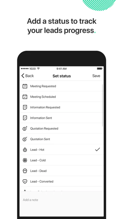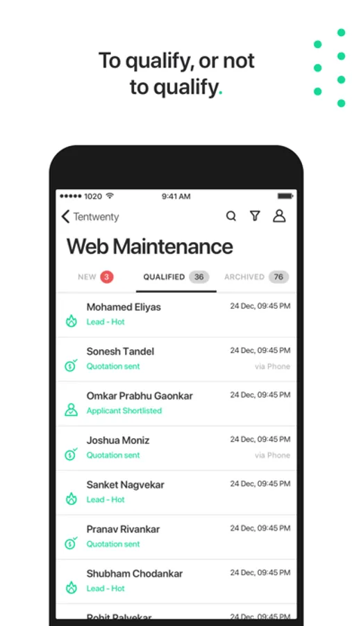 As soon as you have spoken to your new lead, add a shiny new status to where that customer fits in with your sales funnel. Move your leads from ‘NEW’ to ‘QUALIFIED’ and be the envy of the office – especially because each status you update will have your name in lights beside it. Look at you John, look at how good you are! Turn that ‘to-do’ into a ‘to-done’.