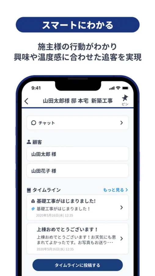 マイホムビズは、住宅会社を紙の管理から解放して、チームワークを高める顧客管理サービスです。