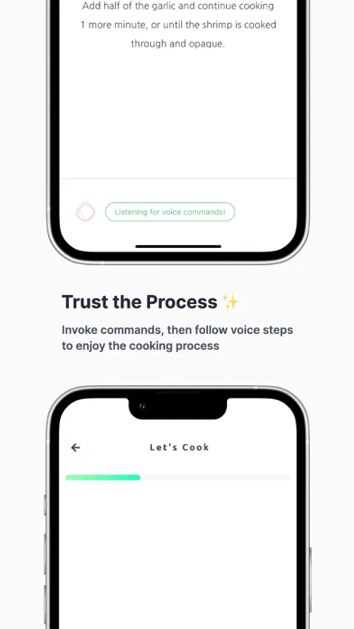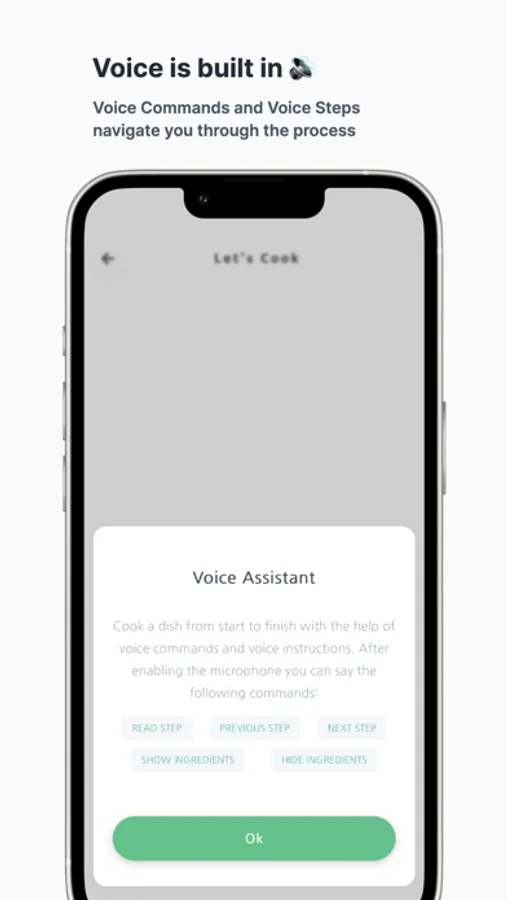 - Control the flow with the help of Voice Commands. Never touch the phone again while you're in a cooking session.