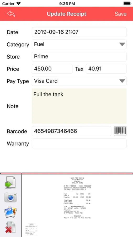 - Save Receipts in your mobile.