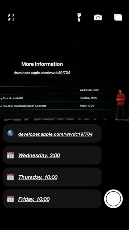 Detect links, addresses, calendar events, and more directly from real life using machine learning based optical character recognition.