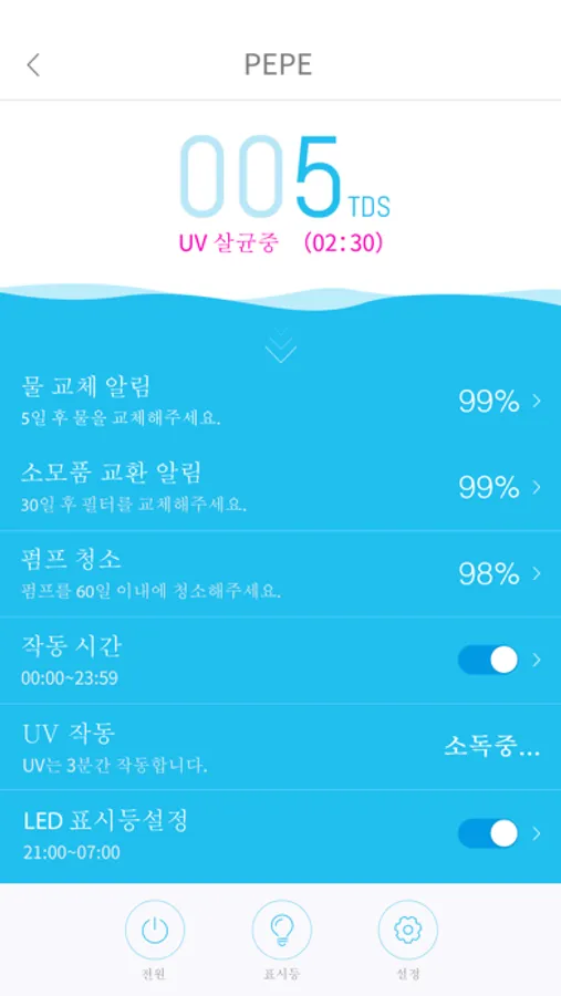 • 물 또는 필터 교체에 대한 알림을 받을 수 있습니다.