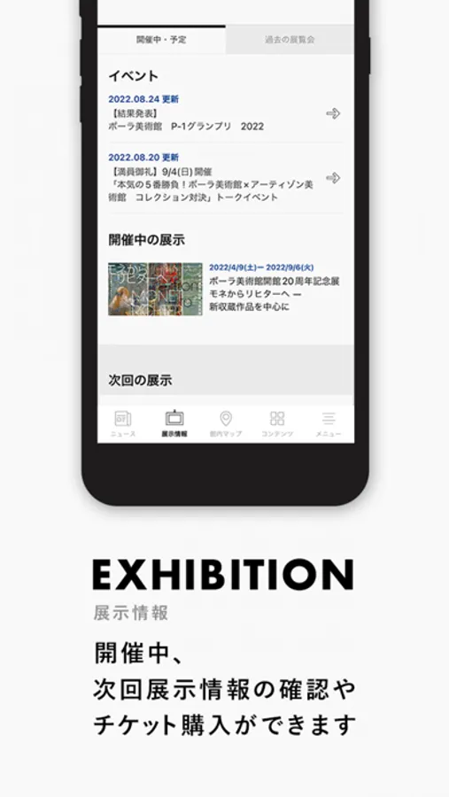 アプリでは、最新ニュースやイベント情報をいち早く確認でき、また、チケット購入も可能です。