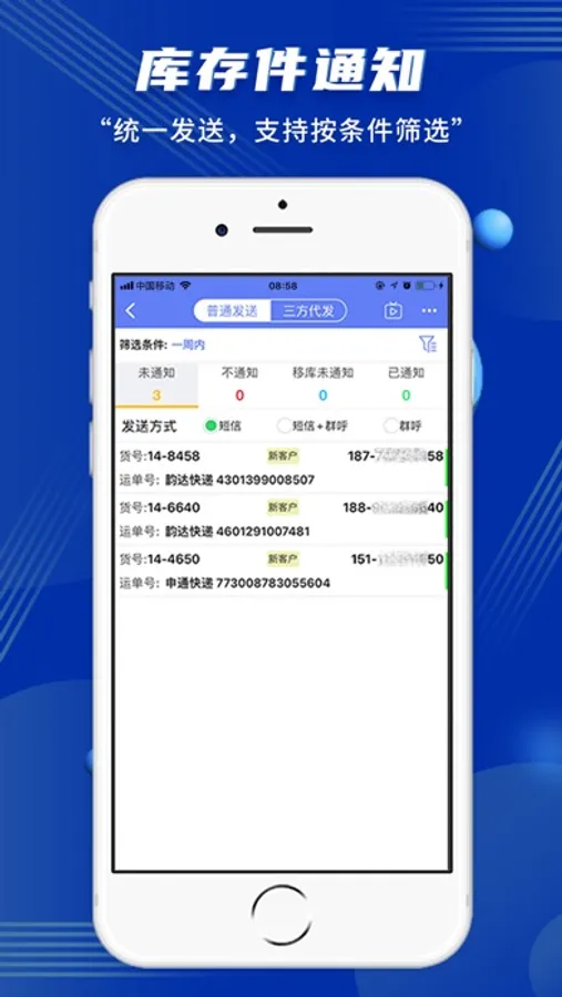 支持6家快递以及4家电商平台,隐私面单短信代发,提高入库以及派件效率。