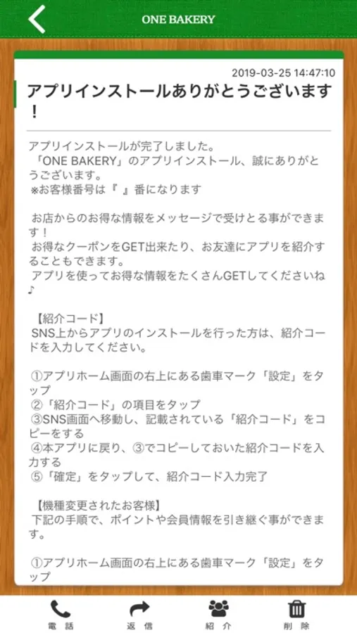 ONE BAKERYのアプリをSNSを通じてお友達に紹介する事ができます。