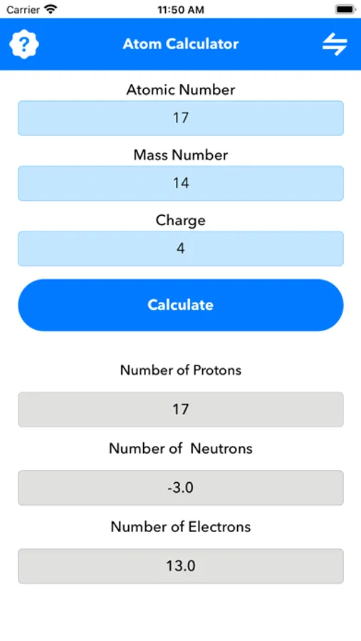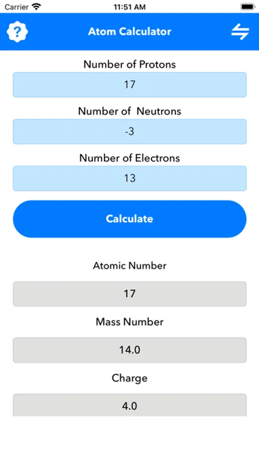 The atom calculator is a tool for calculating the atomic number and the mass number based on numbers of atom components - protons, neutrons, and electrons (or vice versa). In addition, you can define the charge of ions with known numbers of protons and electrons.