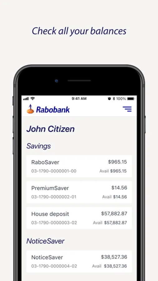 We’ve made it simple to view and manage your Rabobank Online savings anytime, anywhere. Built in security with a simplified 5 digit PIN access to your accounts, no need to carry your Digipass.