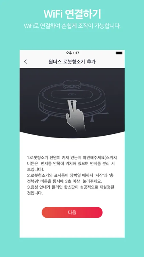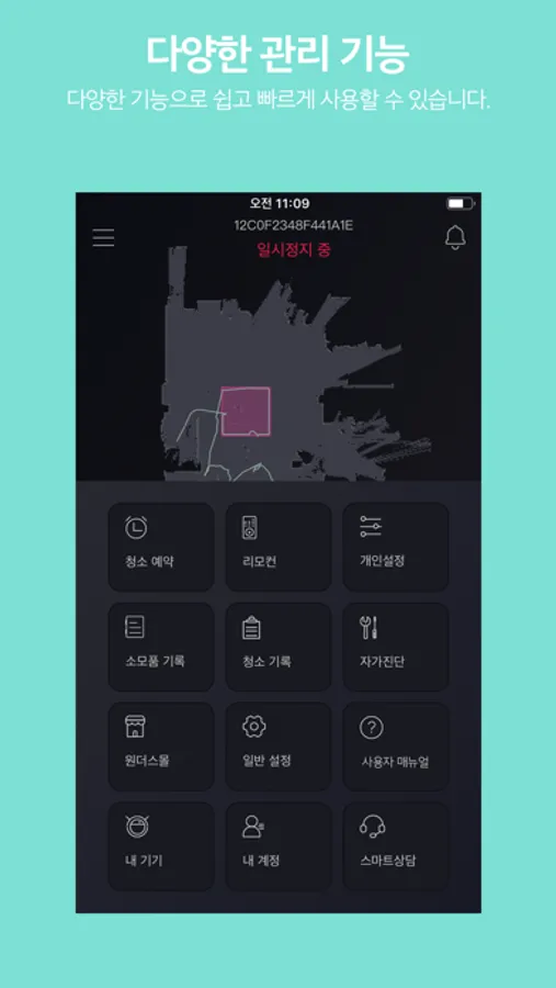원더스 다이나킹 R7 로봇청소기의 작동과 예약, 유지관리 등을 손쉽고 편리하게 이용할 수 있습니다.