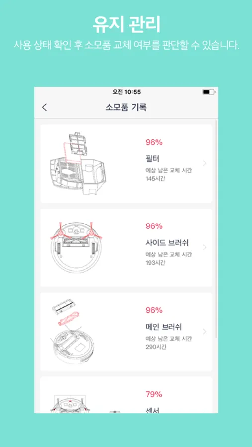 소모품 기록을 제공해 손쉬운 유지 관리가 가능합니다.