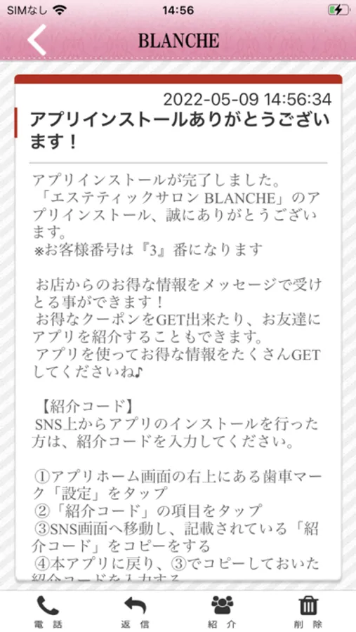 BLANCHEのアプリをSNSを通じてお友達に紹介する事ができます。