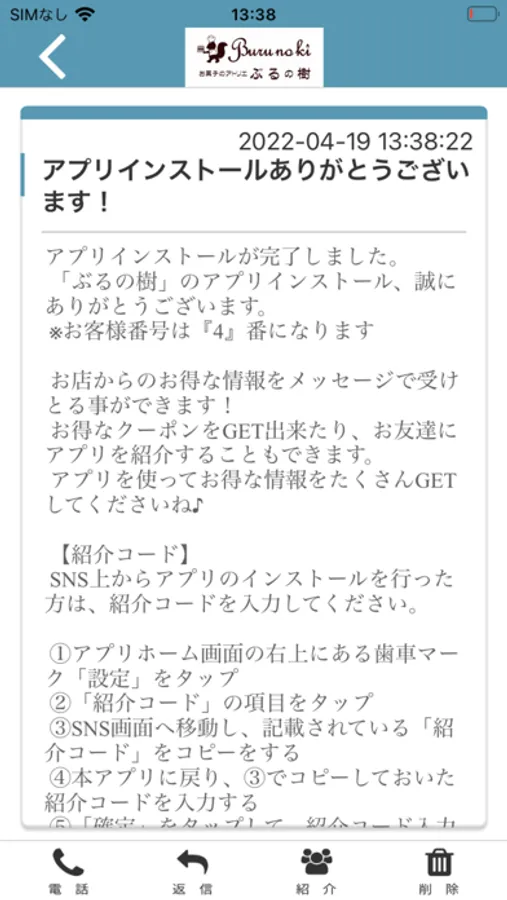 ぶるの樹のアプリをSNSを通じてお友達に紹介する事ができます。